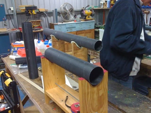 Although more expensive than fibreglass, these were predominantly Carbon Fibre tubes ranging from 38mm to 98 mm, used for George's L3 certification. However, the bulk of tubes were 75mm Carbon Tubes, which best suited available ancillary and existing hardware.